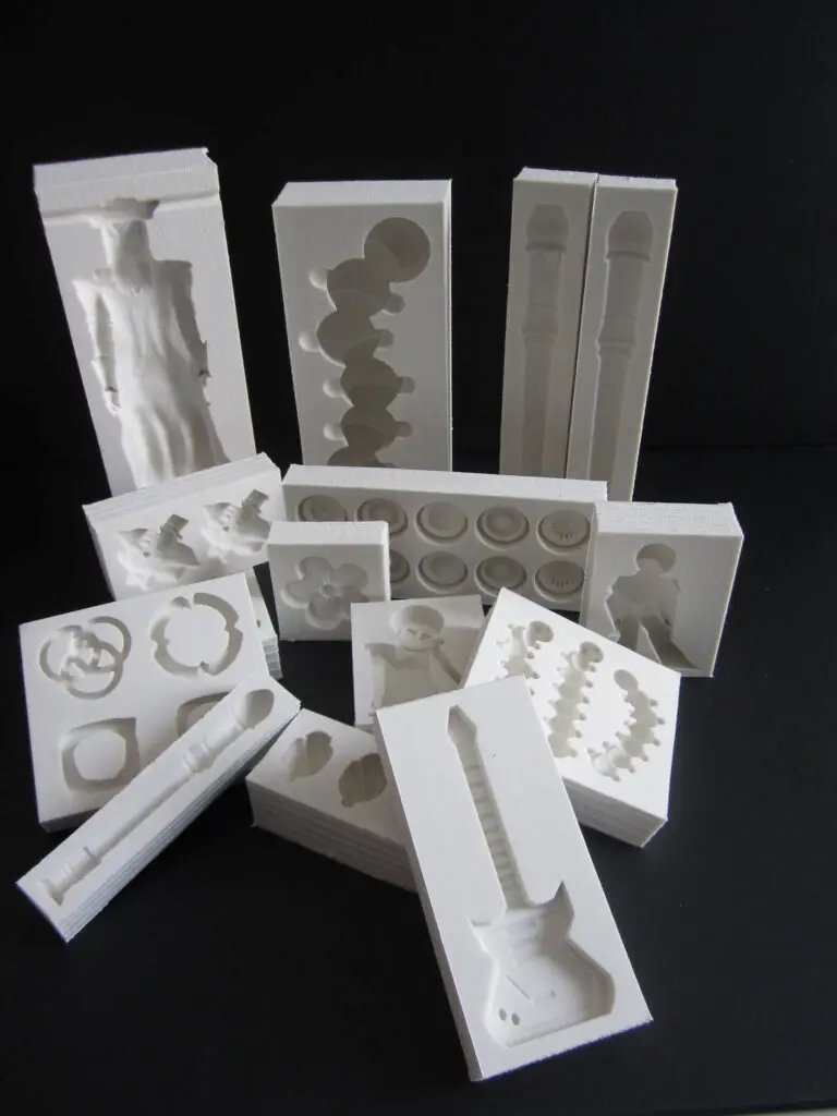 Steel and aluminum molds. Production levels below 1000, 5000, 30000, and over 100000 uses